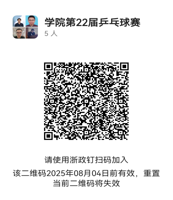 参赛选手报名请扫描浙政钉群二维码,并联系乒协会长朱敏杰老师告知参加的组别,截止时间:5月8日下午15:00。