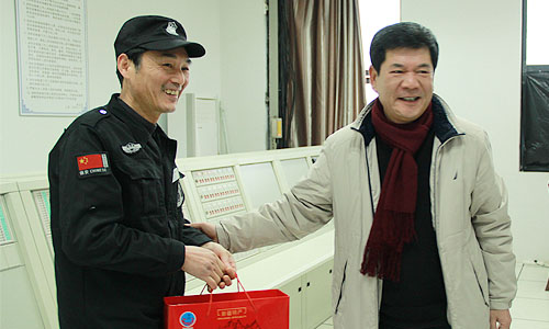 叶院长一行先后来到保卫处消控中心、西大门门岗及派出所警务室、南区高配房、110报警中心、学生公寓值班室、基建后勤处,亲切慰问了寒假期间依然坚守岗位的教职员工,并向他们送上了新春祝福和慰问。