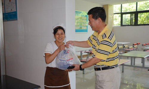 院领导一行先后走访了招就办公室、西大门门岗、学生公寓值班室、群贤楼餐厅、基建后勤处等。每到一处,都与在岗教职员工一一握手并亲切交流,了解教职工们的工作情况,向他们表示亲切的慰问,并送上防暑用品。
