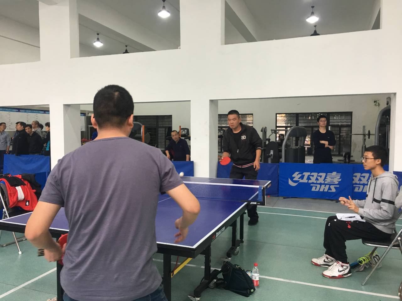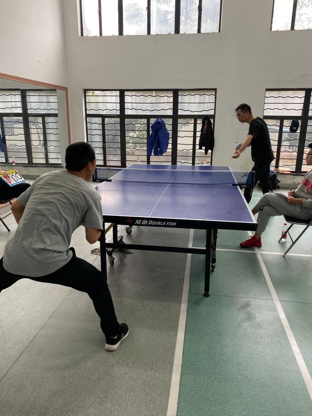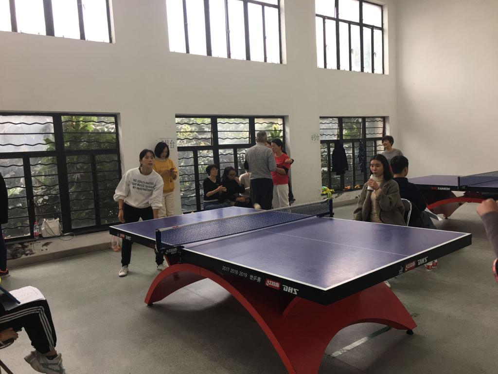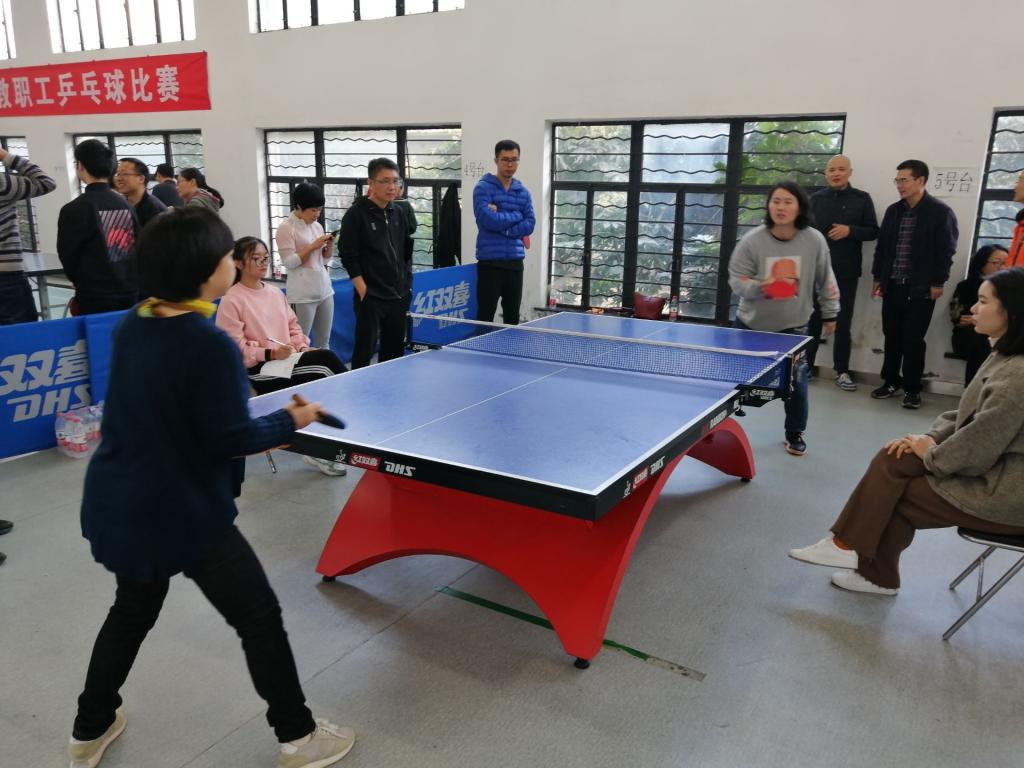 11月23日,由校工会主办、校乒乓球协会承办的第十六届校教职工乒乓球比赛在校工会活动中心顺利进行,共有16个分工会参与了团体赛的角逐。我院代表队在教练宋少平的安排指导下,俞国芬、宋少平、朱敏杰、宋江平等选手轮番上台,奋力拼搏。经过三轮紧张激烈的小组赛,以小组第一名的成绩进入四强。交叉淘汰赛中以2:3不敌后勤代表队,最终获得本次团体赛的第三名。
