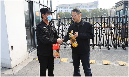 每到一处,学院领导都与在岗教职员工亲切交谈,叮嘱他们要安排好假期的工作和生活,并逐一为大家送上新春慰问品。同时,要求各相关单位要毫不松懈做好校园疫情防控工作,用心用情关爱留校工作、生活的师生,切实做好各项服务保障,并希望大家继续坚守岗位,保障寒假期间校园的安全稳定和各项工作正常运转,确保广大师生度过一个欢乐祥和的春节。